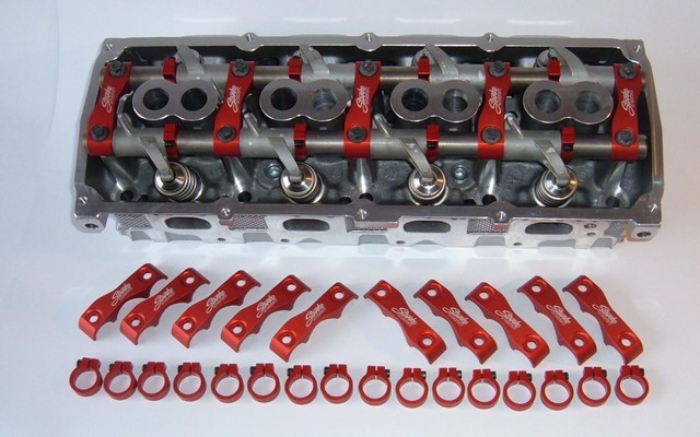 Complete Gen 3 5.7 Stabilizers (10) and Rocker Shaft Collars (16). This combination of Stabilizers and Collars will virtually eliminate the possibilty of a valve train failure. WHEN ORDERING: Please state which cyclinder heads you have. Apache, Tritech and several aftermarket heads will require 6.4 Stabilizers and Collars.